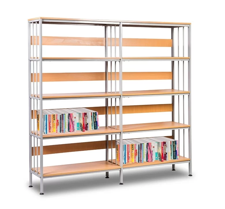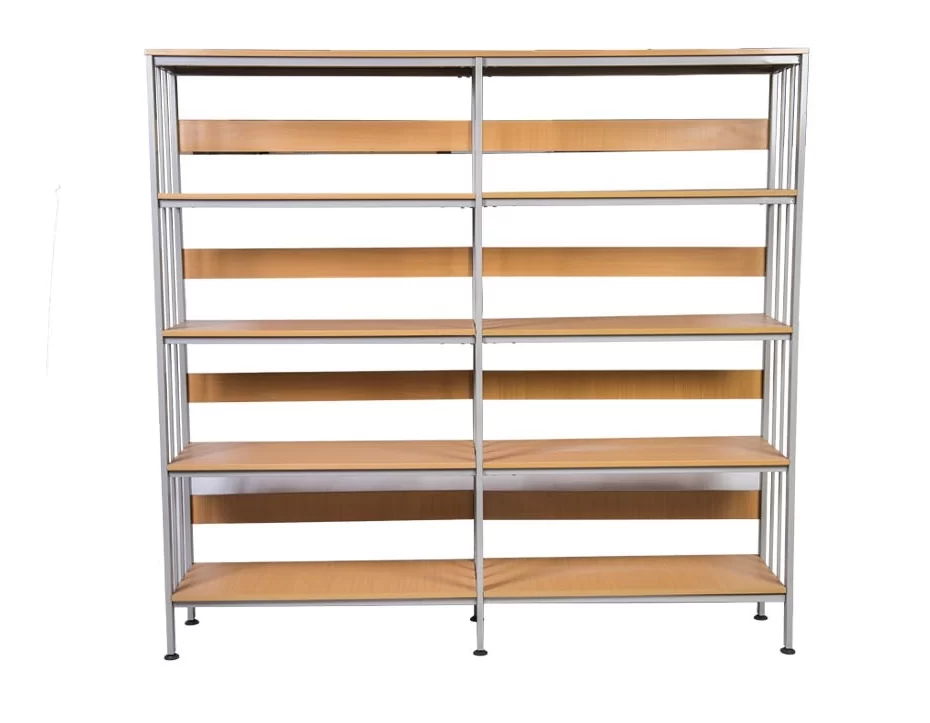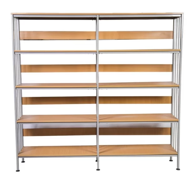 Giá sách khung thép đợt gỗ Melamine có 2 khoang 4 ngăn.