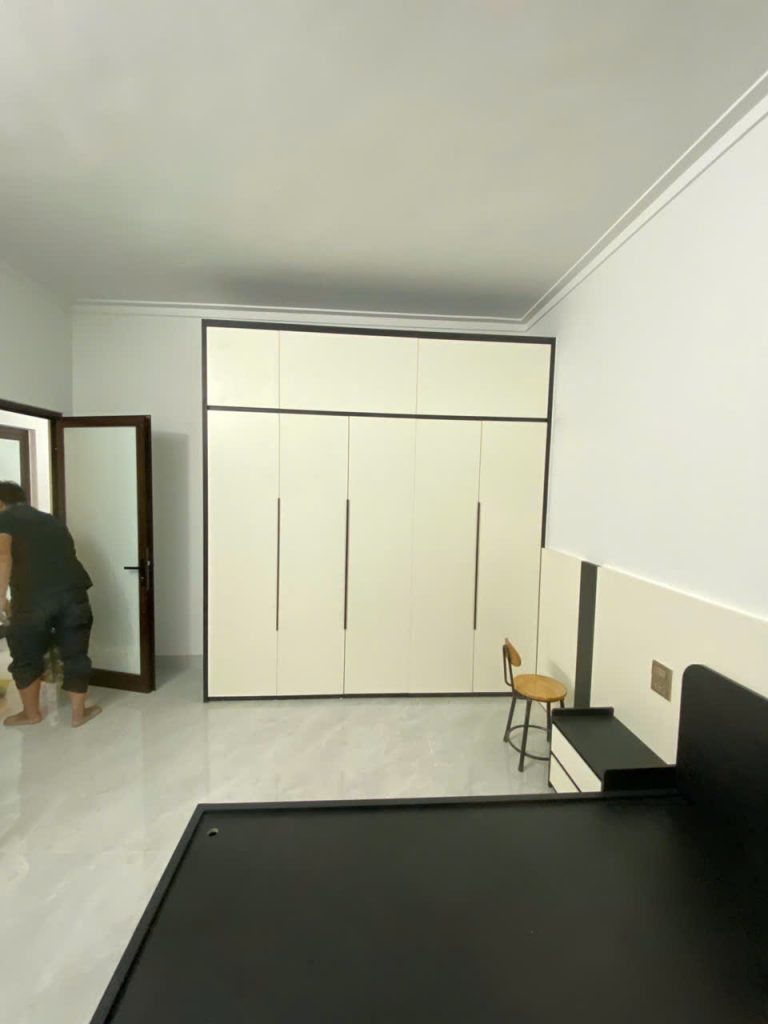 - Tủ quần áo cao kịch trần: thiết kế tối giản, tay nắm âm gọn gàng, tận dụng tối đa diện tích lưu trữ.