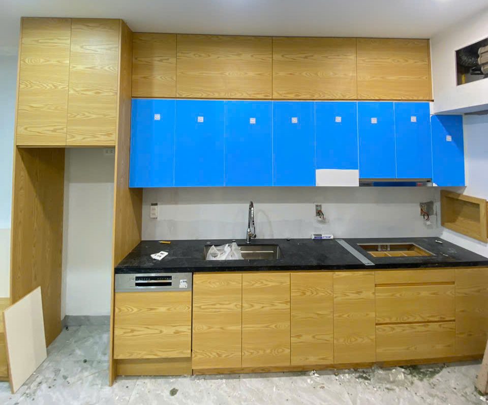 Chất liệu cốt thái phủ laminate không chỉ chống trầy xước, chống ẩm tốt mà còn giữ màu bền đẹp, mang lại vẻ hiện đại và sạch sẽ cho không gian bếp.