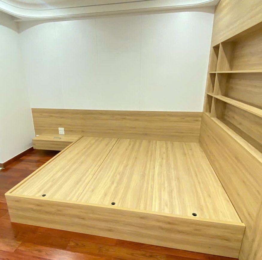 • Giường ngủ bục thông minh: Thiết kế liền khối, có hộc kéo tiện lợi, giúp tiết kiệm diện tích.